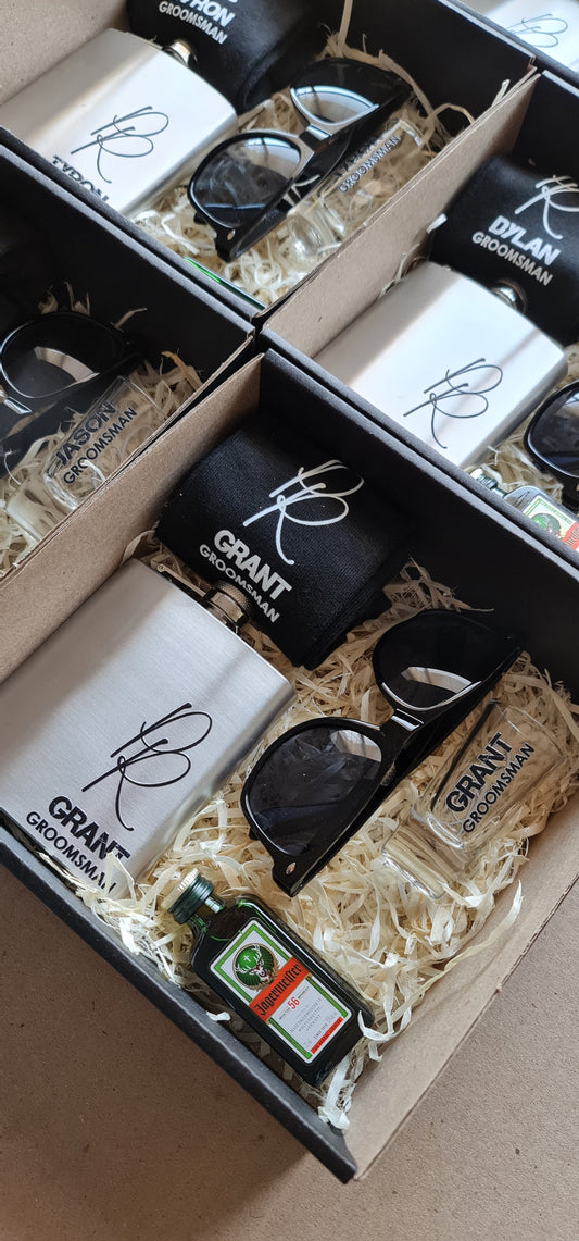 Groomsmen Gift Box - Black Flask and Sunglasses