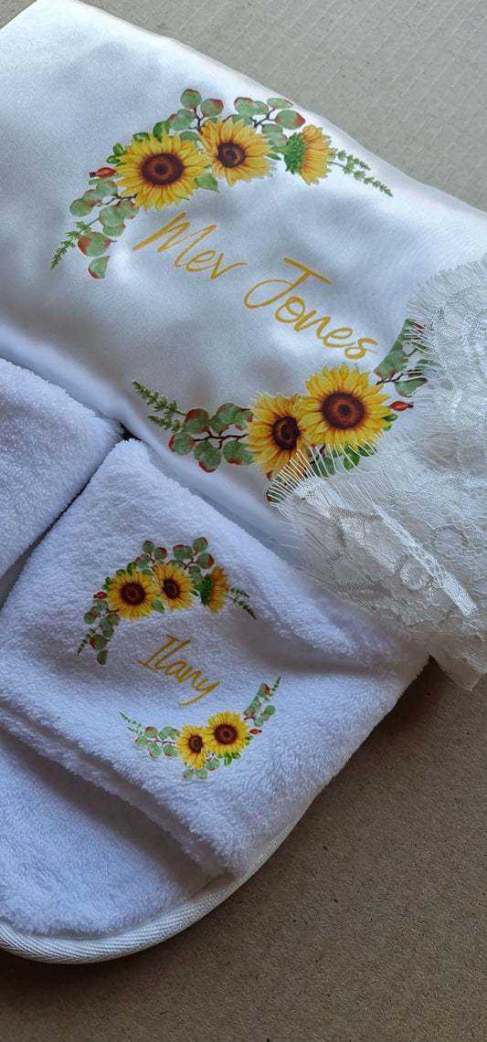 Lace Printed satin robe & slipper combo